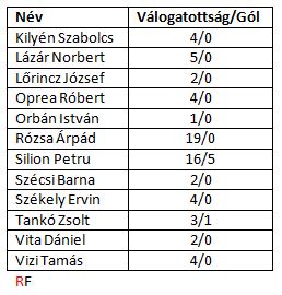 Székely Ervin – A Kispest Honvédnál is eltöltött pár évet ifista korában, majd az FK Csíkszeredában volt meghatározó alakja a védelemnek, erős falat alkotva Lőricz Józsival. A válogatottban az Észak-ciprusi Eb-n kapott szerepet, négy eddigi válogatottságát is ott szerezte. Évekig volt a Tatabánya alappillére, ma már Dorogon játszik.