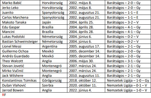 Íme a Rioting Football 40-es listája azokról, akik Magyarország ellen debütáltak.