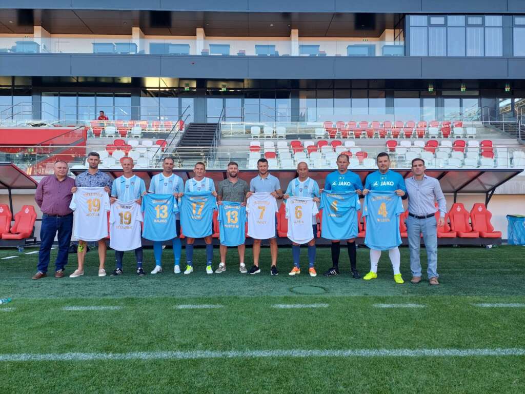 Jakab Zoltán (balra) és Szabó Áron (jobbra) a székely válogatott legendáinak köszöntésén (’23) – Kép: RF archív