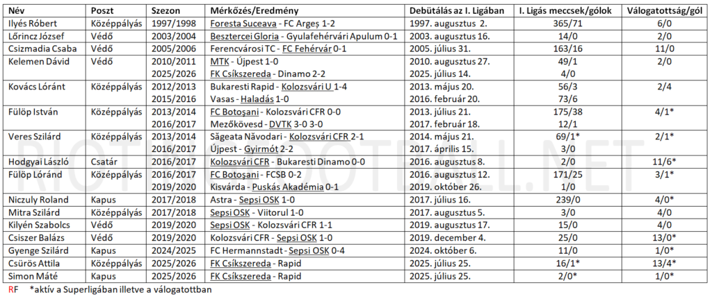 Gondolkodtam, hogy milyen kritériumokat vegyek alapul (erdélyi magyarok az első osztályban a rendszerváltás óta, vagy az elmúlt 50 év magyar játékosai, netán csak székelyföldi születésű játékosok), de aztán a székely válogatottban való szereplésre esett a választás és jelenleg tizenhat játékosra szűkült a kör.